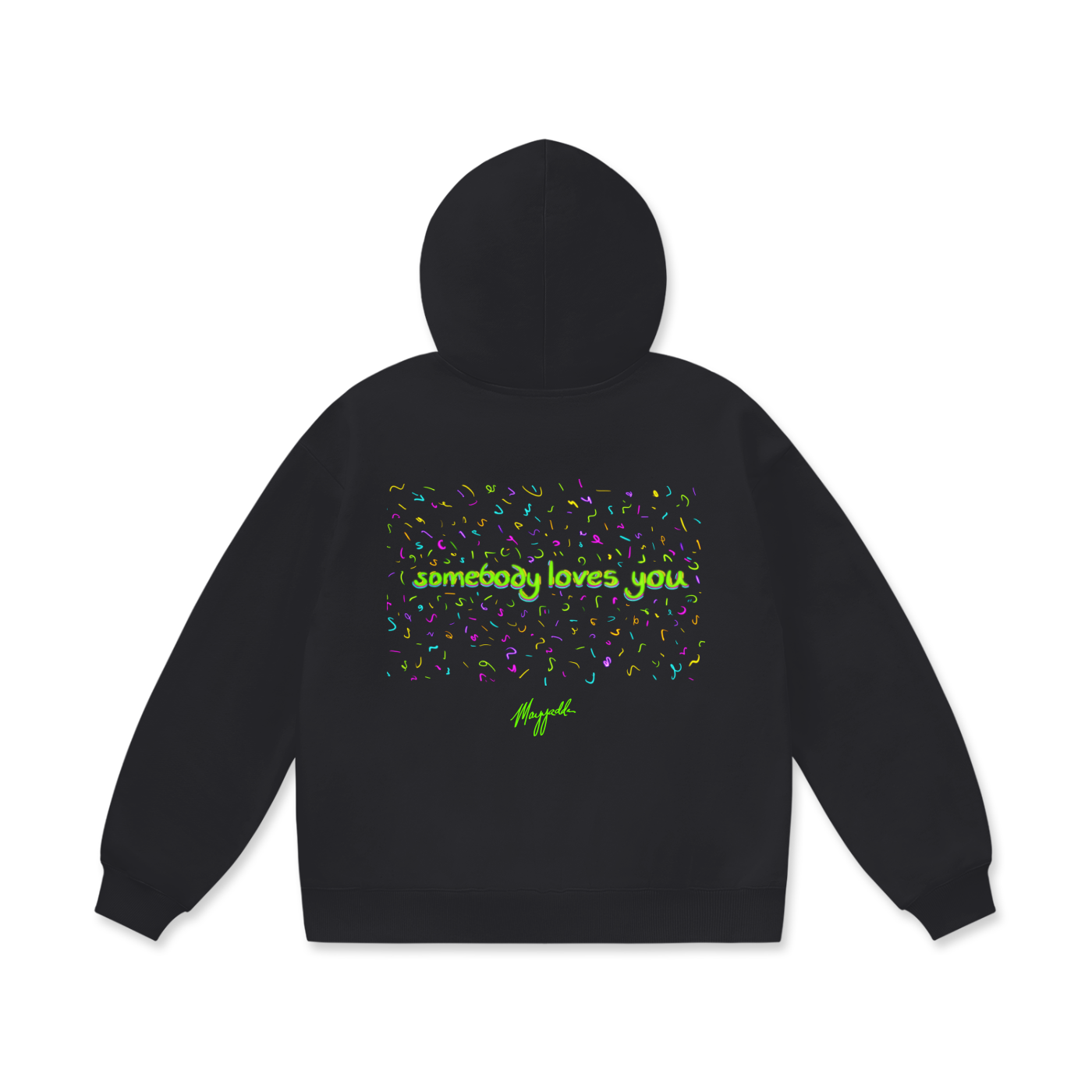 This hoodie is a wearable and readable bear hug. The thique-ass fabric embraces you, while verbally reminding you that you are loved (read it in the mirror) and tells everyone the same thing from the back.